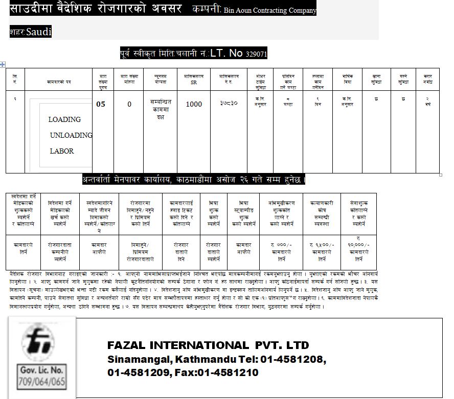 Saudi(Bin Aoun Contracting Company)