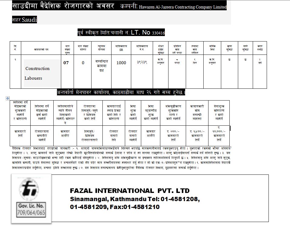 Saudi(Hawazen Al-Jazeera Contracting Company Limited)